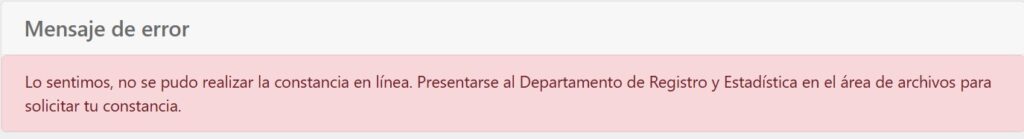 Si en vez de la constancia de expediente estudiantil se le presenta el siguiente mensaje: