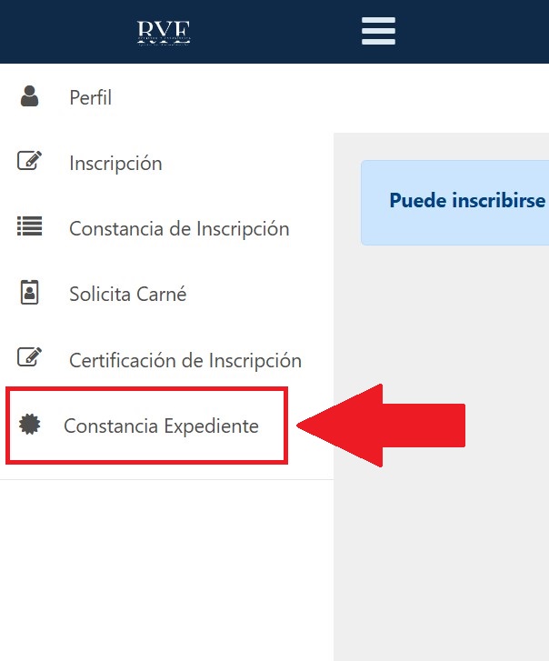 Habiendo ingresado correctamente a la plataforma de portal registro, A continuación, diríjase al menú de tres rayas horizontales que esta ubicado del lado izquierdo y seleccione la opción «*CONSTANCIA DE EXPEDIENTE»