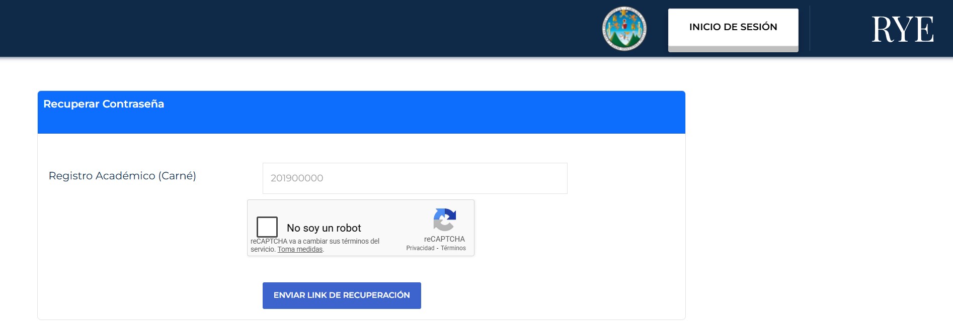 por último, de clic al botón azul «ENVIAR LINK DE RECUPERACIÓN»: