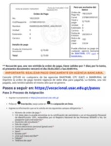 – Resguarde muy bien la orden de pago y la boleta pagada del banco (no extraviarlas); ya que estas, le serán de utilidad al momento de asignarse la prueba de orientación vocacional en el PASO NO. 02 de este tutorial.