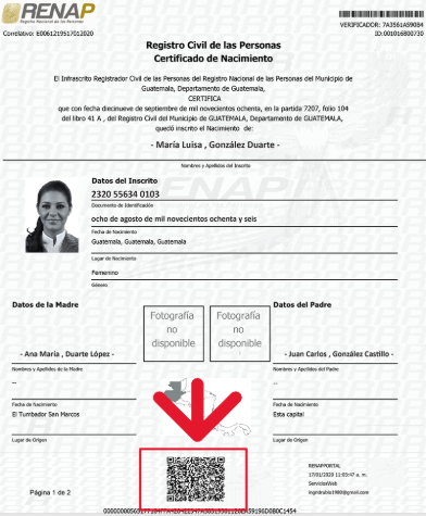 Con la ayuda de su teléfono celular Escanear el código QR ubicado en la parte inferior de la primera hoja de su certificado de nacimiento.