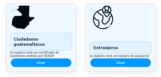 3. Seleccione si es ciudadano guatemalteco o extranjero, si ha seleccionado ciudadano guatemalteco; a continuación, Si ya tiene un certificado de nacimiento adquirido en los últimos 6 meses y lo obtuvo de forma presencial en las oficinas registrales del RENAP, para obtenerlo y descargarlo en formato digital .PDF debe de realizar lo siguiente: